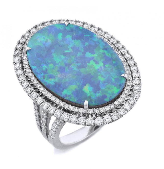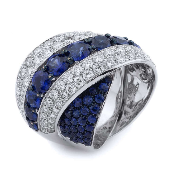 18k White Gold Diamond Round Brilliant Cut Sapphire Ring