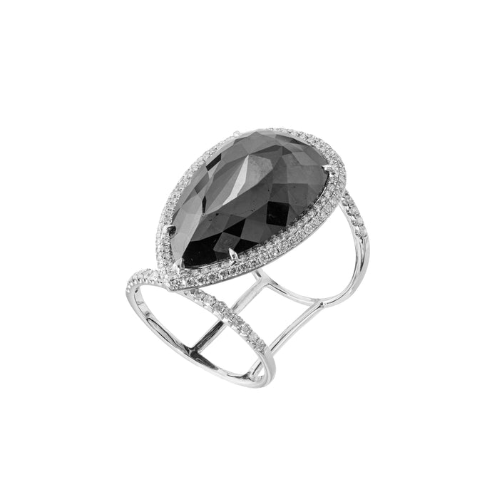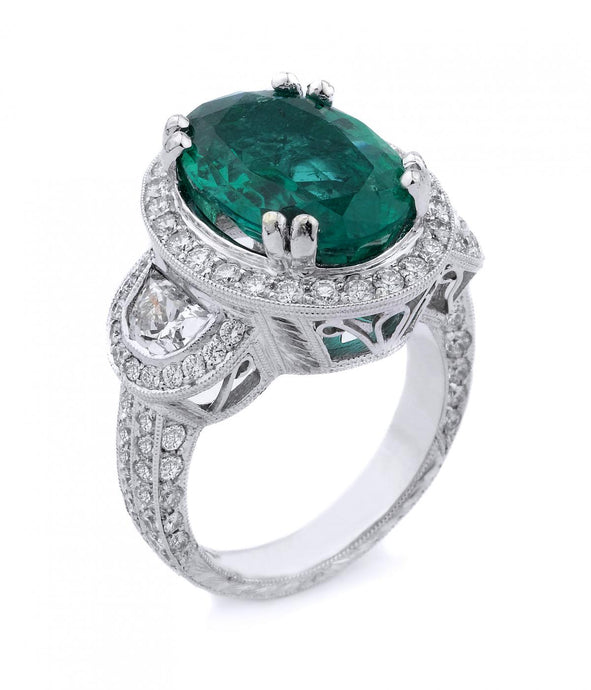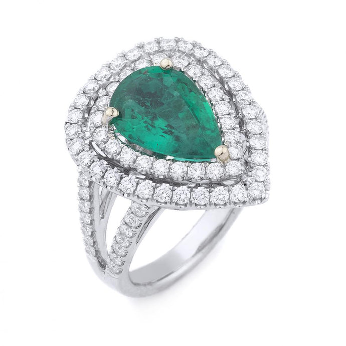 18k White Gold Pear-Shaped Emerald Diamond Ring
