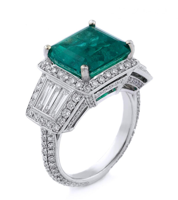 18K White Gold Square Princess Cut Emerald and Diamond Ring